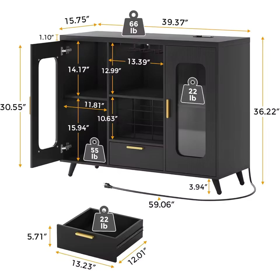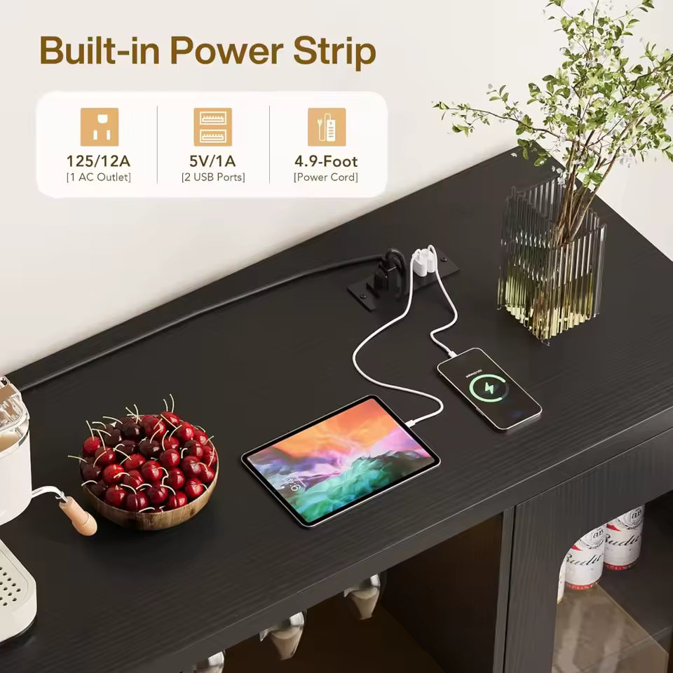 To make your space even more functional, the cabinet includes a built-in power outlet and dual USB ports, allowing you to easily power blenders, coffee makers, or other bar essentials. Everything you need stays close at hand, smart design that fits modern living.